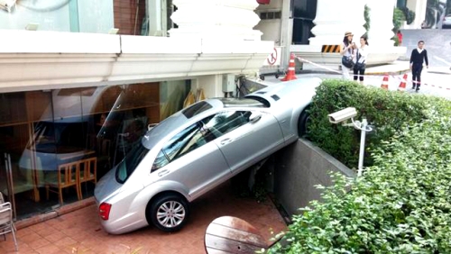 วันนี้ (11 พ.ย.) เวลา 08.30 น. เกิดเหตุรถเบนซ์สีบรอนซ์เทา ไหลลงมาจากบริเวณทางขึ้นโรงแรมแกรนด์ ไฮแอท เอราวัณ เขตปทุมวัน กทม. โดยรถคันดังกล่าวเป็นรถของโรงแรมที่ไว้ให้ลูกค้าเช่า ซึ่งขณะเกิดเหตุลูกค้าที่เช่ารถ ได้จอดรถโดยทำการติดเครื่องยนต์ไว้ และลงจากรถไปหยิบของ แต่ไม่ได้ดึงเบรคมือ ทำให้ตัวรถถอยหลังลงมาจากบริเวณทางขึ้นโรงแรมที่มีลักษณะลาดชัน ทำให้รถไหลลงมาในลักษณะท้ายรถตกลงไปอยู่บริเวณชั้นใต้ดินของตึกด้านข้าง ส่วนตัวรถเบนซ์ได้รับความเสียหายเล็กน้อย ทั้งนี้ ทางลูกค้าผู้เช่ารถต้องการรับผิดชอบค่าเสียหายกับทางบริษัทประกันภัยเอง ทางโรงแรมจึงไม่ได้มีการแจ้งวามกับเจ้าหน้าที่ตำรวจแต่อย่างใด