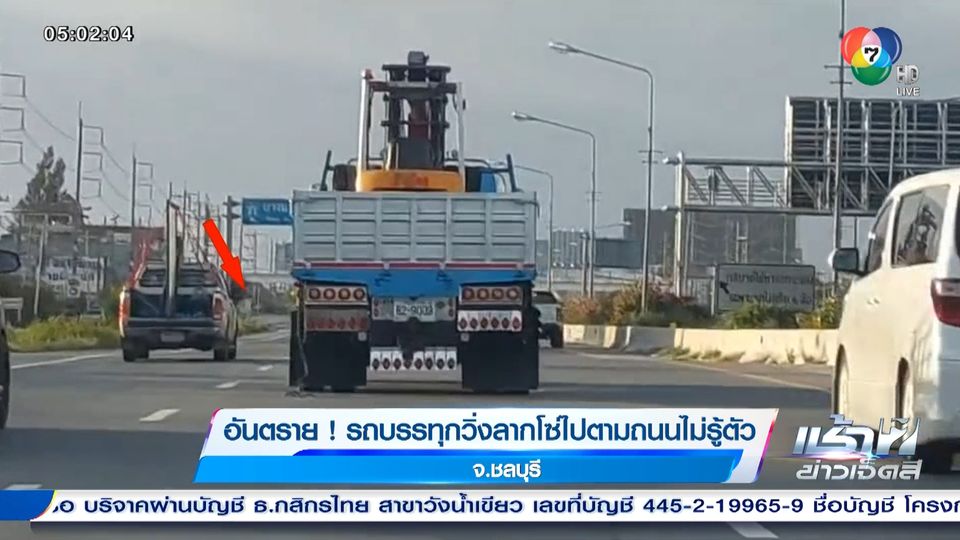 เช้าข่าว 7 สี - มีผู้ที่ขับรถตามหลังรถบรรทุกคันหนึ่ง ซึ่งท้ายรถมีโซ่เส้นใหญ่ถูกลากไปกับพื้น รถบรรทุกก็แล่นด้วยความเร็ว โซ่ก็ถูกลากสบัดไปมาเป็นที่น่าหวาดเสียว