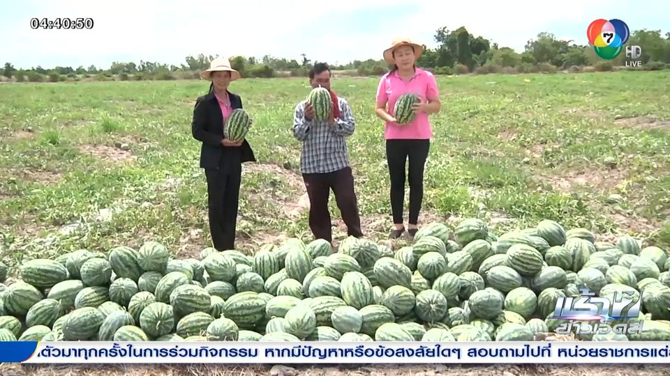 เช้าข่าว 7 สี - ชาวนาจังหวัดสุพรรณบุรี สู้ภัยแล้งด้วยการปรับเปลี่ยนการทำนาข้าว ไปปลูกแตงโม ซึ่งใช้น้ำน้อยกว่า แต่ได้ผลผลิตดี