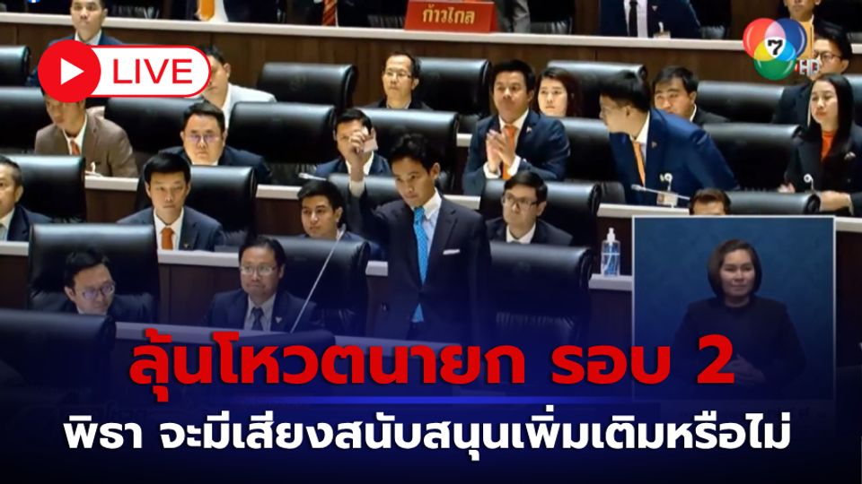 LIVE : ลุ้นโหวตนายกรัฐมนตรี รอบที่ 2 "พิธา ลิ้มเจริญรัตน์" จะมีเสียงสนับสนุนเพิ่มเติมหรือไม่
