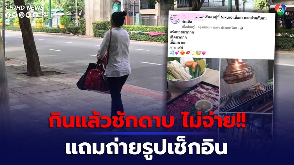 วันนี้ (27 ก.ค. 66) เพจเฟซบุ๊ก Nikuro เนื้อย่างเตาถ่านกับคนรักเนื้อ ได้โพสต์ภาพของหญิงสาวรายหนึ่ง ที่เข้ามากินอาหารที่ร้านจนอิ่ม แต่เมื่อกินเสร็จแล้วกลับชักดาบไม่จ่ายค่าอาหาร และเดินออกจากร้านหน้าตาเฉย