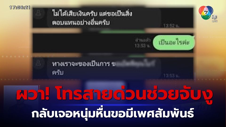 ข่าวเย็นประเด็นร้อน - สาวผวาโทรสายด่วนให้ช่วยมาจับงู แต่ดันไปเจอหนุ่มหื่นสวมลอยเป็นกู้ภัยโทรกลับมา แถมแอดไลน์ส่งขอลับและขอมีเพศสัมพันธ์ ไปดูแช็ตที่ผู้เสียหายนำมาเป็นเผยแพร่กันก่อน