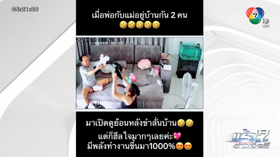 เช้าข่าว 7 สี - กล้องวงจรปิดที่ติดไว้ในบ้าน ส่วนใหญ่พ่อแม่จะติดไว้ดูลูกเล็ก ๆ หรือลูกก็จะไว้คอยดูพ่อกับแม่ที่เพราะบางทีคนแก่อยู่บ้านกันตามลำพัง น่าเป็นห่วง คลิปต่อไปนี้ลูกสาวคนหนึ่ง เปิดกล้องวงจรปิดดูพ่อกับแม่ และได้เห็นคาตาว่าพ่อกับแม่กำลังสู้กัน ไปชม