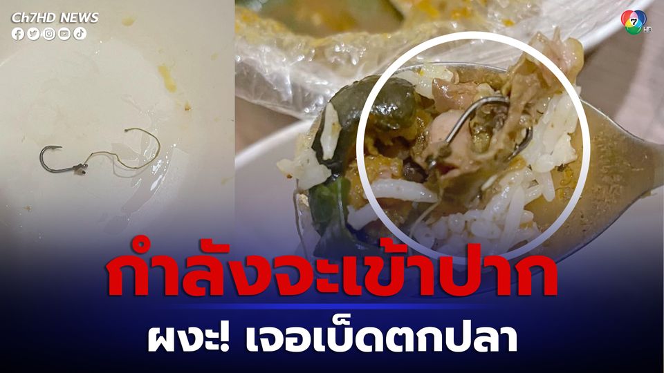 (6 ส.ค. 66) ผู้ใช้เฟซบุ๊กใช้ชื่อว่า It'me Issalee โพสต์แชร์ประสบการณ์เจอเบ็ดตกปลาในอาหารลงในกลุ่มเฟซบุ๊ก "พวกเราคือผู้บริโภค" โดยได้โพสต์รูปอาหารที่ตักขึ้นมาเจอเบ็ดตกปลาอยู่ในนั้นทั้งที่กำลังจะรับประทาน โชคดีสังเกตุเห็นทัน โดยได้ระบุข้อความว่า