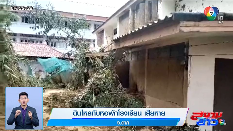 สนามข่าว 7 สี - หลังจากมีฝนตกลงมาอย่างหนัก ในอำเภอท่าสองยาง จังหวัดตาก ทำให้เกิดเหตุการณ์ดินไหลทับเข้ามาภายในอาคารหอพักของโรงเรียนบ้านแม่ระเมิง บ้านพักครูได้รับความเสียหาย เคราะห์ดีไม่มีใครเป็นอะไร
