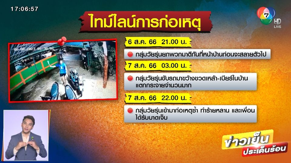 ข่าวเย็นประเด็นร้อน - ผู้การฯ กาฬสินธุ์ สั่งชุดสืบเร่งล่ากลุ่มวัยรุ่น หลังก่อเหตุยกพวกพร้อมอาวุธครบมือ ไปบุกบ้านชาวบ้านพร้อมทำลายทรัพย์สิน และยังลามไปทำร้ายร่างกายเด็กในบ้าน ได้รับบาดเจ็บอีก 3 คน
