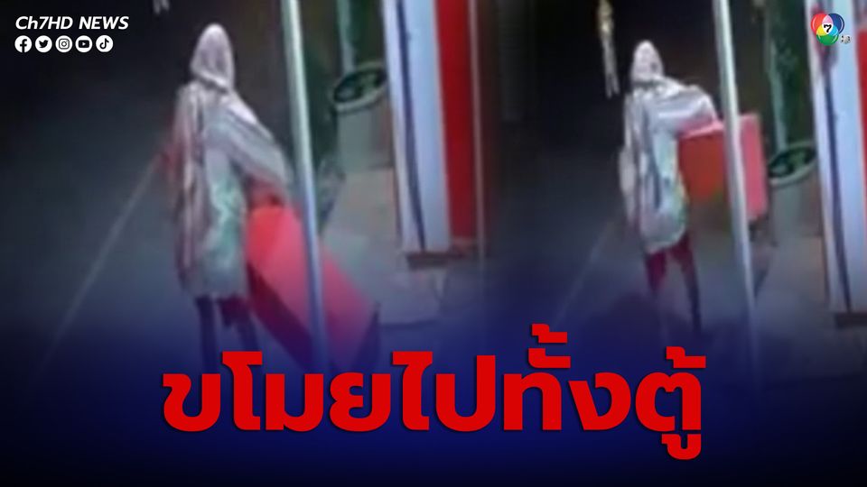 กล้องวงจรปิดจับภาพโจรโพกผ้าไขน็อตยกตู้เติมเงินไปทั้งตู้ ซึ่งภายในหมู่บ้านหายไปแล้ว 4 ตู้