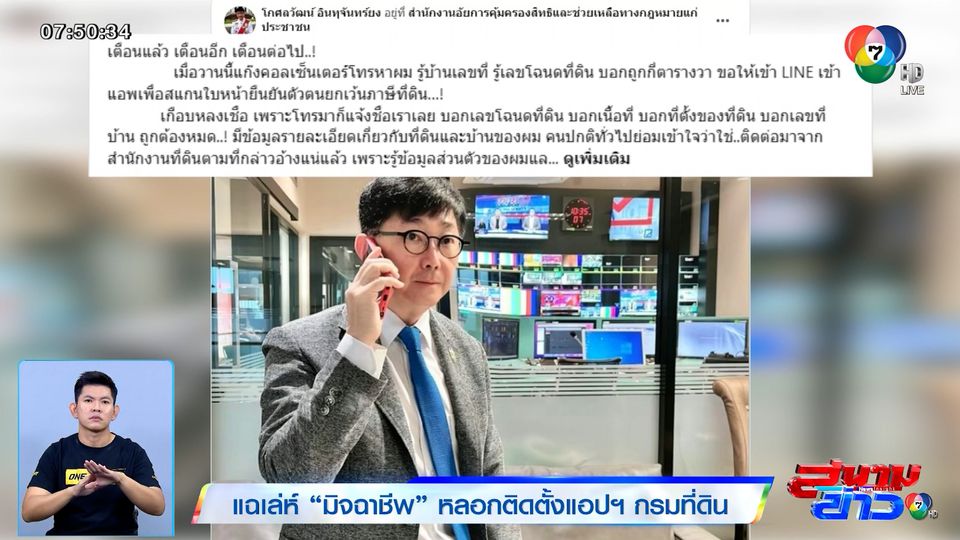 สนามข่าว 7 สี - มาเตือนคุณผู้ชมกัน ล่าสุดมิจฉาชีพเขามีกลลวงกลหลอกรูปแบบใหม่ โทรไปบอกให้ยืนยันตัวตนเพื่อจะได้สิทธิพิเศษไม่ต้องจ่ายภาษีที่ดิน มีเหยื่อแล้วมากกว่า 3,000 คน แม้แต่รองโฆษกสำนักงานอัยการสูงสุดยังโดน