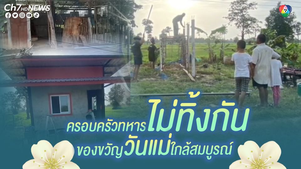 ขณะเดียวกัน ตลอดการเริ่มภารกิจสร้างบ้าน ได้มีผู้ใหญ่บ้านนำชาวบ้านในพื้นที่มาร่วมแรงร่วมใจช่วยทีมทหารช่าง ตอนนี้การสร้างบ้านผ่านมาแล้ว 8 วัน บ้านใกล้เป็นบ้านที่มั่นคง ซึ่งครอบครัวพลหทารอนุพงษ์ใกล้ได้สัมผัสความสบาย โดยวันแม่แห่งชาติ 12 ส.ค. นี้ บ้านหลังนี้จะเป็นของขวัญชิ้นสำคัญวันแม่ ให้ครอบครัวพลทหาร อนุพงษ์ เสาะสมบูรณ์ สมกับคำว่า “ครอบครัวทหารไม่ทิ้งกัน”