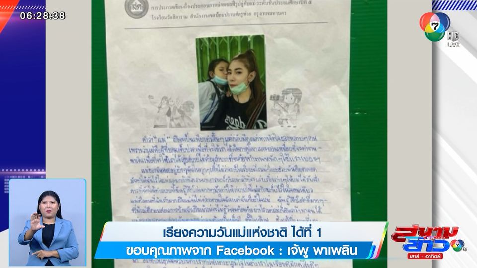 คุณแม่คนหนึ่ง ที่ใช้ชื่อเฟซบุ๊กว่า "เจ้พู พาเพลิน" โพสต์ว่า แม่ภูมิใจในตัวลูกมาก ๆ เลยนะ ตั้งใจเรียนแบบนี้ตลอดไปนะลูก รางวัลอาจจะไม่สำคัญเท่าการกระทำของหนู คือ ลูกที่ดีของแม่ แม่ภูมิใจในตัวหนูมากนะ รางวัลที่ 1เรียงความวันแม่ พร้อมแนบภาพกระดาษ ที่ได้รับรางวัลที่ 1 โดยมีเนื้อหา ว่า "คำว่าแม่ถึงจะเป็นเพียงคำสั้น ๆ แต่กลับมีคุณค่าทางจิตใจของหลาย ๆ คน เพราะแม่คือผู้ที่ยอมเจ็บปวด เพื่อให้เราลืมตาดูโลก และยอมเหนื่อยที่จะทำงานหาเงิน เพื่อที่จะให้เราได้สุขสบายไม่ต้องลำบากที่จะต้องทำงานหนักใช้แรงเยอะ ๆ แม่ของฉันคอยอยู่ข้างๆฉันในทุก ๆ เรื่อง ไม่ว่าเรื่องอะไร แม่จะคอยช่วยคิดตลอด มันทำให้ฉันไว้ใจแม่และกล้าที่จะระบายอารมณ์กับแม่ กล้าที่จะเล่าเรื่องราวต่างๆให้แม่ฟัง การที่ฉันได้ทำแบบนี้ มันทำให้ฉันรู้สึกโล่งมาก ๆ มันทำให้สบายใจไม่ต้องเก็บไว้ในใจคนเดียว แม่คือคนที่ฉันรักมาก ถึงแม่จะไม่ค่อยตามใจฉัน แต่ฉันก็เข้าใจแม่ ฉันรู้สึกโชคดีมาก ๆ ที่มีแม่คอยสอนการบ้านฉัน ถึงแม้แม่จะไม่รู้ว่าจะต้องทำอย่างไร แต่แม่ก็ค้นคว้ามาจนได้ แม่คอยบอกสอนฉันตลอดว่าจะต้องเป็นเด็กดี ตั้งใจเรียน ช่วยผู้อื่นยามที่เขาต้องการให้ช่วย เป็นมิตรกับผู้อื่น ไม่ทำให้ผู้อื่นลำบากใจเวลาที่ต้องทำงานร่วมกันกับเรา และที่สำคัญฉันไม่ต้องตั้งใจเรียนก็ได้ ขอแค่ฉันตั้งใจเรียนและไม่ยุ่งเกี่ยวกับยาเสพติด ฉะนั้น การที่เรามีแม่ที่ดีและเข้าใจเราในทุกๆเรื่อง เราควรสำนึกบุญคุณแม่ ที่เลี้ยงเรามา อย่าทำให้เขาผิดหวังในตัวเรา ทำให้แต่เขาภูมิใจในตัวเราในเรื่องที่มีแต่สิ่งดี ๆ ดูแลเขาในยามที่เขาแก่เฒ่าหรือเจ็บป่วย และรักแม่ให้เหมือนที่รักเรา" ซึ่งคนที่เขียนคือนักเรียนระดับชั้นประถมศึกษาปีที่ 5 เท่านั้น หลังจากนั้นมีคนเข้ามาแสดงความคิดเห็นว่าน่ารักที่สุด พร้อมด้วยสติกเกอร์รูปหัวใจอีกมากมาย