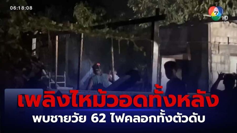 สนามข่าวเสาร์-อาทิตย์ - เกิดเหตุเพลิงไหม้บ้านหลังหนึ่งวอดทั้งหลัง ขณะที่ภรรยาออกไปทำธุระ ทำให้ไฟคลอกชายอายุ 62 ปี ที่ร่างกายไม่แข็งแรง เสียชีวิตคาบ้าน