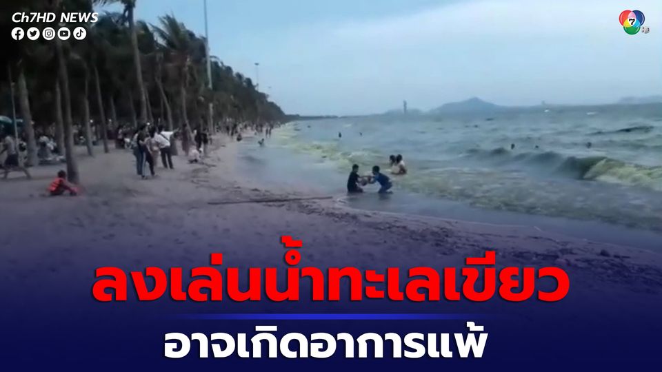 สถาบันทางทะเลฯเตือนลงเล่นน้ำทะเลหาดบางแสนที่เป็นสีเขียว อาจทำให้เกิดอาการแพ้คัน คลื่นไส้ เวียนหัว