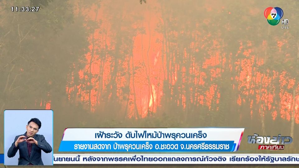 สถานการณ์ไฟไหม้ป่าพรุควนเคร็ง ตำบลเคร็ง อำเภอชะอวด จังหวัดนครศรีธรรมราช เมื่อวานนี้ ไฟป่าโหมไหม้ป่าพรุในหมู่ 1 ตำบลเคร็ง ทำให้ต้องระดมกำลัง เจ้าหน้าที่เสือไฟ ชุดปฏิบัติการไฟป่า กรมอุทยานแห่งชาติสัตว์ป่าและพันธุ์พืช ลากสายดับเพลิงเข้าไปฉีดน้ำป้องกันไฟป่าลุกลาม