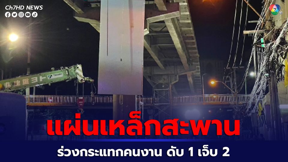 คนงานรื้อถอนเหล็กสะพานข้ามแยกบางกะปิ สลิงยังเกี่ยวกับแผ่นเหล็กไม่ครบทั้ง 4 มุม ทำให้แผ่นเหล็กร่วงลงมากระแทกคนงาน ดับ 1 เจ็บ 2 คน