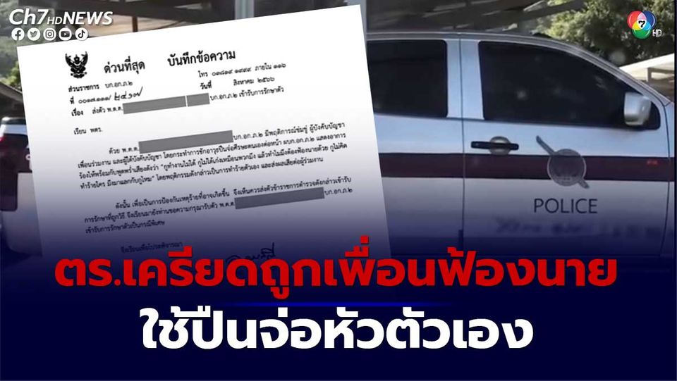สะเทือนวงการตำรวจ พันตำรวจตรี ใช้ปืนจ่อหัวตัวเอง ต่อหน้าผู้บังคับบัญชา อ้างถูกเพื่อนร่วมงานรวมตัวกันฟ้องนาย ลั่น ไม่ได้เหมือนพวงมึง ทำไมต้องฟ้องนาย