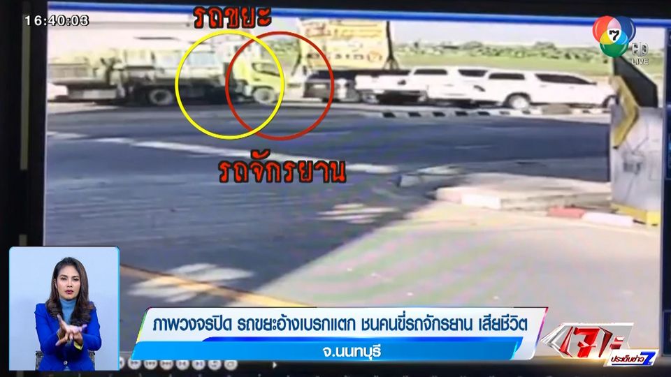 เจาะประเด็นข่าว 7HD - รถบรรทุกขยะพุ่งชนชนรถจักรยาน ทำให้หญิงอายุ 64 ปี เสียชีวิต ในจังหวัดนนทบุรี โดยคนขับรถบรรทุกขยะ อ้างว่า รถเบรกแตก