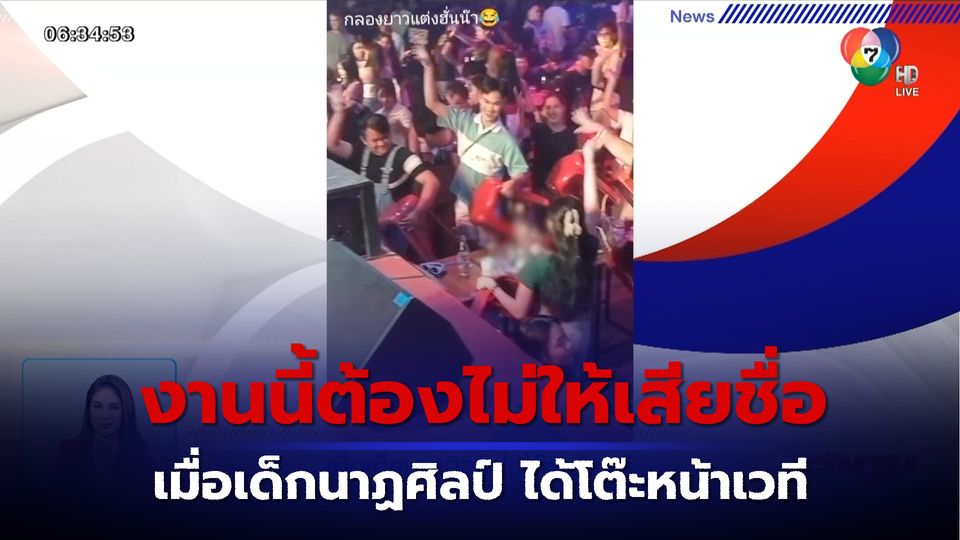 สนามข่าวเสาร์-อาทิตย์ - มาดูเรื่องราวความบันเทิงกันบ้างดีกว่า เมื่อไปเที่ยวเธค เที่ยวผับ แน่นอนว่าก็ต้องมีดนตรี มีการเต้น แล้วจะเป็นอย่างไร ถ้ากลุ่มเด็กนาฏศิลป์นั่งโต๊ะหน้าเวทีเลย งานนี้ก็ต้องไม่ให้เสียชื่อ การร้องรำทำเพลง