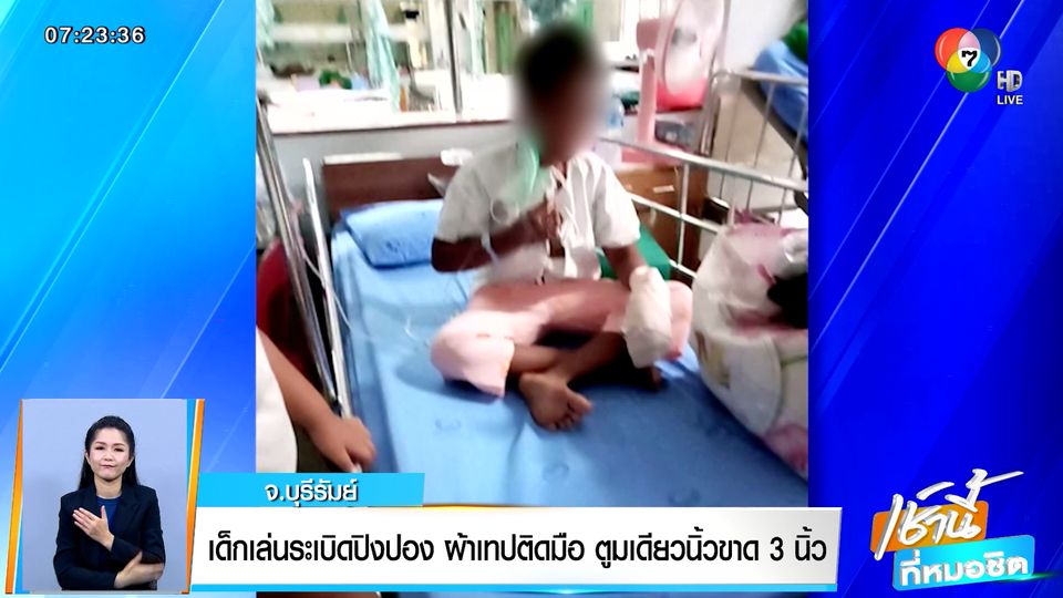 เช้านี้ที่หมอชิต - เด็กชายสองพี่น้อง อายุ 12 ขวบ และ 9 ขวบ ชาวบุรีรัมย์ ชวนกันดัดแปลงระเบิดปิงปอง เอาผ้าเทปพันสายไฟมาพันซ้ำ เพื่อให้การระเบิดรุนแรงยิ่งขึ้น พี่เป็นคนจุด น้องเป็นคนดู แต่พอตอนจะขว้าง ปรากฎว่ากาวผ้าเทปติดมือ ขว้างไม่พ้น ระเบิดตูมเดียวนิ้วขาดไป 3 นิ้ว