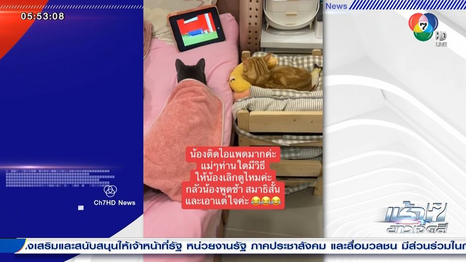 แม่เครียดลูกติดแท็บเล็ต จ้องแต่จอไม่ละสายตาเลย ลูกที่ว่าคือน้องแมว ให้ดูทีไรนิ่งทุกที แล้วไม่ได้ดูตัวเดียว ชวนเพื่อนดูด้วย แล้วเวลาดูคือนิ่งกันทั้งคู่