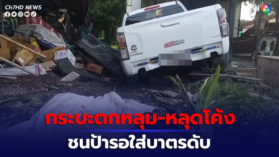 รถกระบะตกหลุม เสียหลัก หลุดโค้ง พุ่งชนป้าที่กำลังใส่บาตร และชนรถจักรยานยนต์ที่จอดรอส่งลูกไปทำงาน ทำให้มีผู้เสียชีวิต 2 คน และบาดเจ็บสาหัส 2 ราย