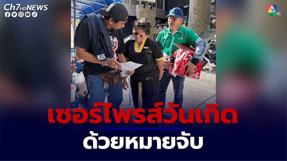 ตำรวจบุกไปเซอร์ไพรส์วันเกิดผู้ต้องหาถึงที่ ส่วนของขวัญที่มอบให้คือหมายจับฐานความผิด "ร่วมกันฉ้อโกง"