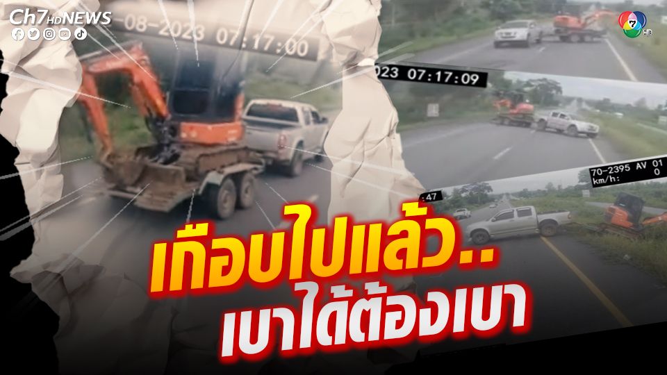 ผู้สื่อข่าวรายงานว่า มีผู้ใช้ TikTok ชื่อ “supana52” หรือ “Aom เสราะกราว” โพสต์คลิปวิดีโอจากกล้องหน้ารถ พร้อมเขียนแคปชันว่า “บุญรักษานะคะ มาเด้อขวัญเอ้ย อย่าหนีไปไหน” โดยผู้โพสต์นำคลิปนาทีระทึกจากกล้องหน้ารถบรรทุกพ่วงขณะขับอยู่บนท้องถนน เมื่อช่วงเช้าวันที่ 22 ส.ค. 66 ซึ่งกำลังทำความเร็วแซงขึ้นในเลนขวา จากนั้นมีรถกระบะ 4 ประตู ลากพ่วงเทรลเลอร์บรรทุกรถแบ็กโฮขนาดเล็ก ทำความเร็วแซงในเลนซ้าย แต่แซงยังไม่ทันพ้นมุมกล้องดี ก็เริ่มเห็นความผิดปกติ ด้วยความเร็วและสภาพถนน ทำให้ส่วนพ่วงเทรลเลอร์เริ่มส่าย จนทำให้ดึงรถกระบะที่ลากเสียการทรงตัว หมุนรอบเป็นวงกลมอยู่กลางถนน แล้วส่วนเทรลเลอร์ที่บรรทุกรถแบ็กโฮตกลงไปร่องกลางถนน โชคดีที่ไม่เสียหลักจนพลิกคว่ำ และคนไม่ได้เป็นอันตราย