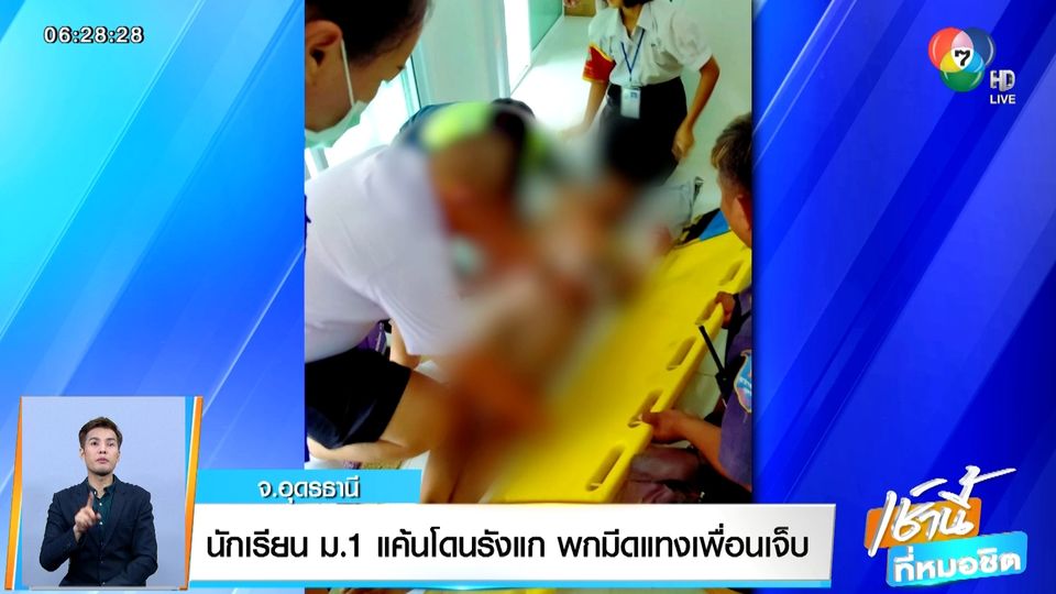 เช้านี้ที่หมอชิต - นักเรียนชาย ชั้น ม.1 ถูกเพื่อนต่างห้อง ที่ตัวใหญ่กว่ารังแกบ่อยครั้ง จึงแอบพกมีดไปโรงเรียนเพื่อป้องกันตัว ปรากฎว่า เกิดมีปากเสียงกัน ด้วยความคับแค้นใจสะสมมานาน จึงบุกแทงเพื่อนบาดเจ็บ