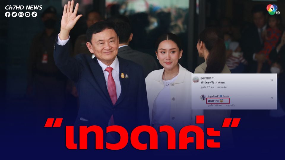 ชาวเน็ตคอมเมนต์ไอจี "อุ๊งอิ๊ง" ตั้งคำถาม "ทักษิณ" เป็นนักโทษหรือเทวดา? เจ้าตัวตอบกลับสั้นๆ "เทวดาค่ะ"