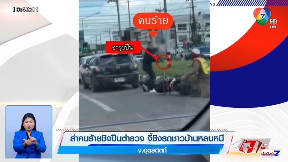 เจาะประเด็นข่าว 7HD - ไปติดตามความคืบหน้าเหตุระทึกกลางเมืองอุตรดิตถ์ ที่มีคนร้ายแย่งปืนจากตำรวจ แล้วขี่รถจักรยานยนต์หลบหนีไป ล่าสุดเจอรถแล้วแต่ยังไม่เจอคนร้าย ตอนนี้ ชุดสืบสวนอยู่ระหว่างเร่งแกะรอยล่าตัว