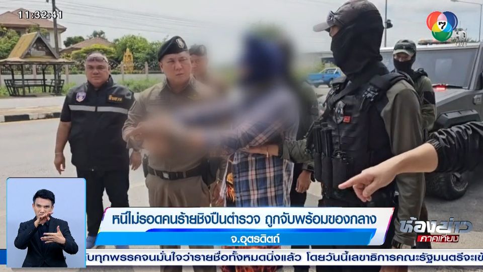 ห้องข่าวภาคเที่ยง - ในที่สุดคนร้ายก่อเหตุชิงปืน ตำรวจ สภ.เมืองอุตรดิตถ์ และจี้ชิงรถจักรยานยนต์ชาวบ้านขี่หลบหนี ก็ถูกจับกุมตัวได้ หลังตำรวจควบคุมเพื่อนที่พาหลบหนีขยายผล ก่อนคุมตัวชี้จุดทำแผนประกอบคำรับสารภาพเมื่อ 2 ชั่วโมงที่ผ่านมา