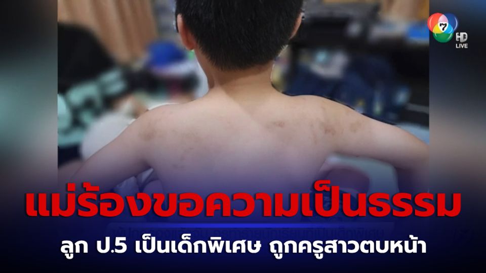 ข่าวเด็ด 7 สี - ผู้ปกครองของเด็กชายอายุ 10 ขวบ นักเรียนชั้น ป.5 โรงเรียนเอกชนแห่งหนึ่งในอำเภอสัตหีบ จังหวัดชลบุรี เปิดใจกับทีมข่าว ถึงการโพสต์ภาพร่องรอยบาดแผล พร้อมข้อความเรียกร้องความเป็นธรรมให้กับลูกชาย ซึ่งเป็นเด็กพิเศษ ถูกครูสาวคนหนึ่งตบหน้า และมีรอยเขียวช้ำตามร่างกาย โดยเหตุเกิดเมื่อวันที่ 18 สิงหาคมที่ผ่านมา หลังผู้ปกครองพาไปโรงพยาบาล แล้วนำใบรับรองแพทย์เข้าแจ้งความไว้ที่ สภ.สัตหีบ เพื่อให้ดำเนินคดีกับครูสาวคนดังกล่าว