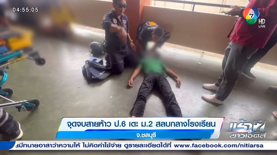 เหตุการณ์นี้เกิดขึ้นที่โรงเรียนแห่งหนึ่ง เขตอำเภอบางละมุง จังหวัดชลบุรี คุณครูแจ้งเหตุมีนักเรียนชายชั้น ม.2 นอนหมดสติ หลังถูกนักเรียนรุ่นน้องชั้น ป.6 เตะเสยคาง อาสาสมัครกู้ภัยฯ เร่งพาตัวผู้บาดเจ็บส่งโรงพยาบาล ส่วนเด็กชายผู้ก่อเหตุนั่งอยู่ใกล้ ๆ ไม่ได้หนีไปไหน