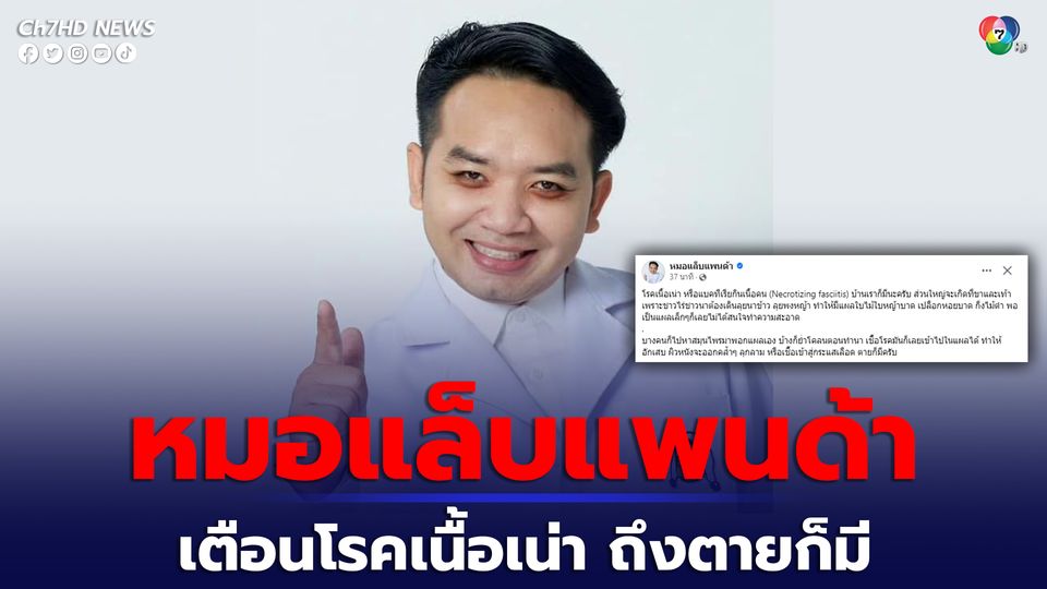 แบคทีเรียกินเนื้อคนนางแบบต้องถูกตัดขา หมอแล็บแพนด้าเตือนโรคเนื้อเน่า บ้านเราก็มี เริ่มจากแผลเล็กๆ ที่ขาหรือเท้า บางคนไปหาสมุนไพรมาพอกแผล เชื้อเข้าสู่กระแสเลือดถึงตายได้