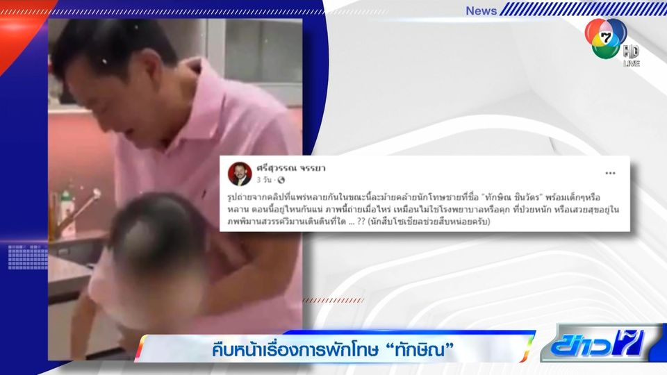 โดยภาพของ นายทักษิณ ชินวัตร อดีตนายกรัฐมนตรี ดังกล่าว ถูกโพสต์ในเพจเฟซบุ๊กของ นายศรีสุวรรณ จรรยา ผู้นำองค์กรรักชาติ รักแผ่นดิน เมื่อวันที่ 1 กันยายนที่ผ่านมา พร้อมตั้งคำถามว่า รูปถ่ายจากคลิปที่แพร่หลายกันในขณะนี้ บุคคลในภาพตอนนี้อยู่ที่ใด ภาพนี้ถ่ายเมื่อใด พร้อมฝากนักสืบโซเชียลช่วยสืบหาคำตอบ