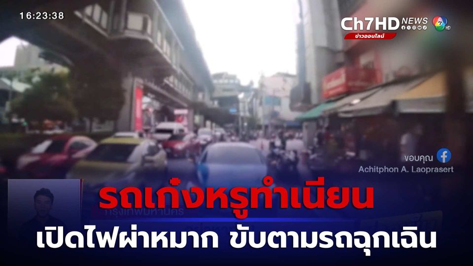 ข่าวเย็นประเด็นร้อน - รถหรูลักไก่! ขับจี้ตามท้ายรถฉุกเฉิน ญาติบนรถเห็นยืนยัน ไม่ใช่ญาติฉัน ถ่ายคลิปไว้หวั่นเกิดอุบัติเหตุ