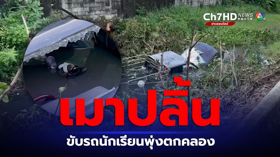 ดื่มจนเมา ทั้งที่ทำหน้าที่ขับรถรับ-ส่งนักเรียน ขับชนขอบทางพุ่งตกคลอง รถพลิกคว่ำหลายตลบ เคราะห์ดีที่รถพลิกหงายกลับขึ้นมา เด็กนักเรียน 10 ชีวิต ได้รับความช่วยเหลือขึ้นจากน้ำ ทั้งเจ็บทั้งตกใจกลัว
