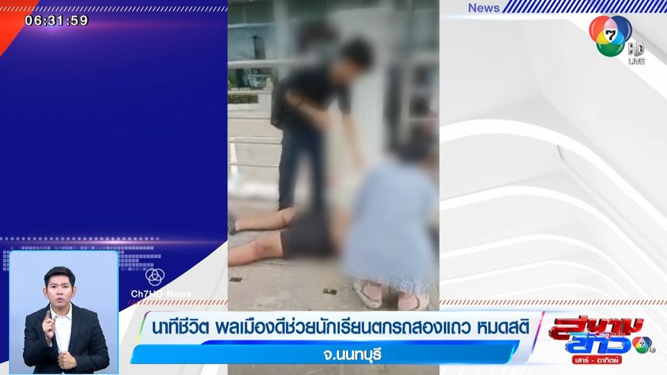 สนามข่าวเสาร์-อาทิตย์ - มาดูเหตุการณ์นาทีชีวิตเด็กนักเรียน พลัดตกจากรถสองแถวประจำทาง หมดสติได้รับบาดเจ็บ พลเมืองดีที่เห็นเหตุการณ์ช่วยเหลือส่งโรงพยาบาล อาการปลอดภัยแล้ว ขณะที่ย่าเด็กวอนคนขับรถรับมาผิดชอบ