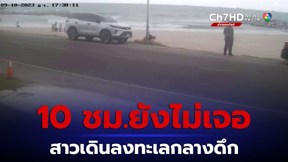 เจ้าหน้าที่ค้นหาต่อ สาวน้อยใจแฟนเดินลงทะเล ผ่านไปแล้วกว่า 10 ชั่วโมงยังไม่เจอตัว ตรวจสอบกล้องวงจรปิด ภาพสุดท้ายนั่งอยู่ที่ชายหาดจริง
