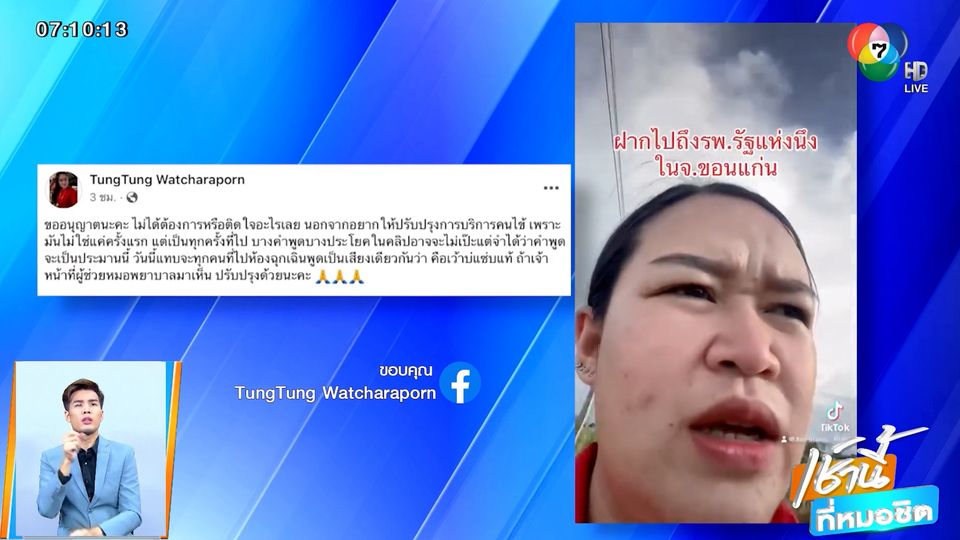 เช้านี้ที่หมอชิต - แม่ชาวจังหวัดขอนแก่น อัดคลิปวิดีโอระบายความอัดอั้นตันใจ หลังพาลูกน้อยที่ไข้ขึ้นสูงไปหาหมอที่โรงพยาบาลภาครัฐแห่งหนึ่ง ในอำเภอบ้านแฮด จังหวัดขอนแก่น แต่กลับถูกเจ้าหน้าที่โรงพยาบาลพูดจาไม่เหมาะสม สองแม่ลูกต้องรอนาน 7 ชั่วโมง สุดท้ายไม่ได้รักษา ต้องกระเตงลูกน้อยกลับบ้าน