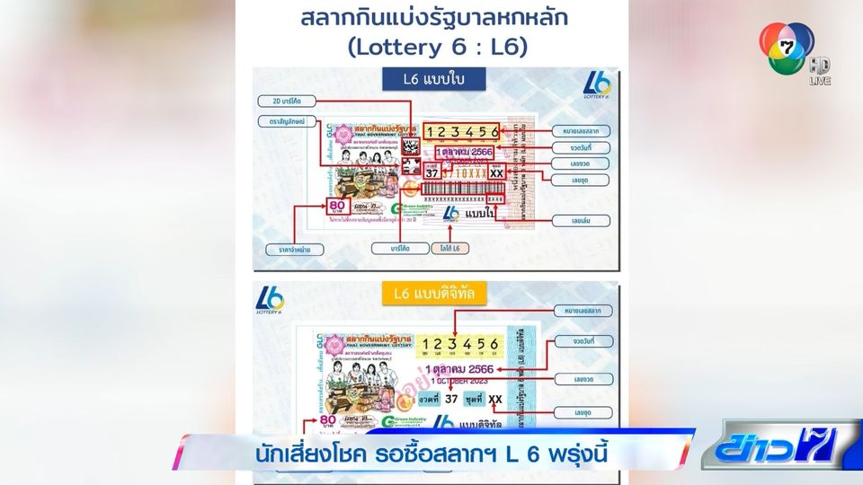 ข่าวภาคค่ำ - พรุ่งนี้ สำนักงานสลากกินแบ่งรัฐบาล จะเริ่มเปิดจำหน่ายสลากดิจิทัล L6 ผ่านแอปพลิเคชัน เป๋าตัง เป็นวันแรก