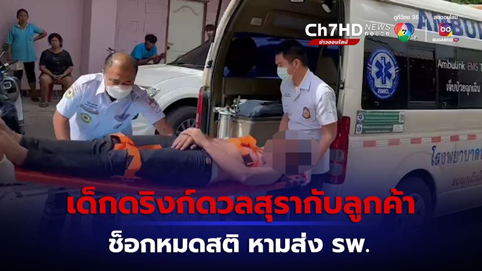 หนุ่มนั่งดริงก์ดวลดื่มเหล้ากับลูกค้าในร้านคาราโอเกะ สุดท้ายช็อกหมดสติ ต้องแจ้งอาสากู้ภัยเข้าช่วยเหลือนำตัวส่งโรงพยาบาล