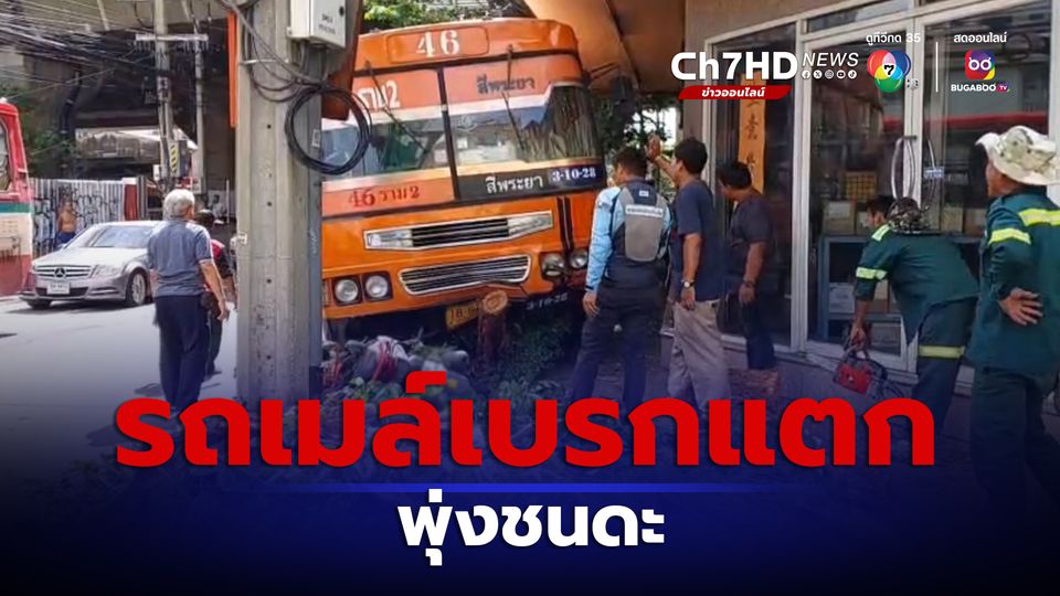 รถเมล์สาย46 เบรกแตก พุ่งชนจักรยานยนตร์และต้นไม้ข้างทาง คนขับ จยย.หวิดดับ