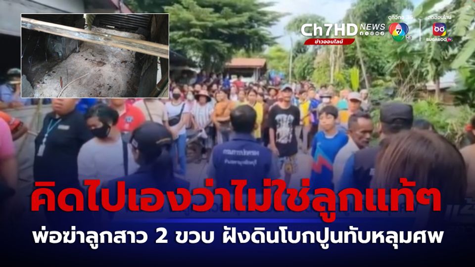 เช้าข่าว 7 สี - เกิดเหตุการณ์สลดใจ พ่อสุดโหดฆ่าลูกสาววัย 2 ขวบ แล้วนำร่างไปฝังดินไว้ใต้พื้นห้องครัวของบ้านที่จังหวัดกำแพงเพชร โดยมีแม่คอยช่วยเหลือหาซื้อปูนมาโปกปิดหลุมศพ เพื่ออำพรางไม่ให้ใครรู้