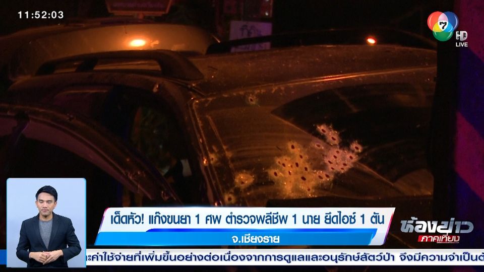 ห้องข่าวภาคเที่ยง - แก๊งมูเซอพ่อลูก รับจ้างขนยาเสพติดจากชายแดนภาคเหนือ ถูกจับตาย 1 คน ขณะขับรถขนไอซ์ กว่า 1 ตัน ซิ่งหนีและยิงต่อสู้ มีตำรวจชุดจับกุมเสียชีวิต 1 นาย และบาดเจ็บ 1 นาย