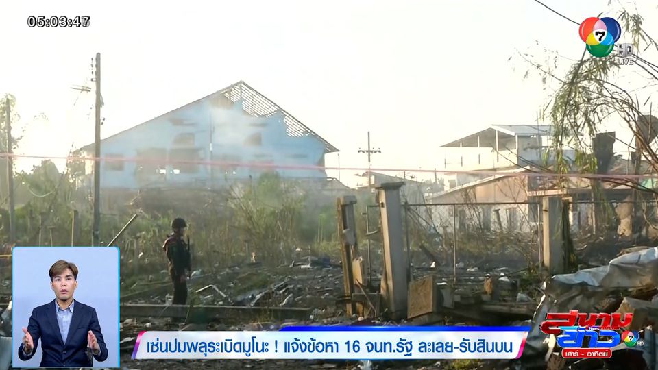 สนามข่าวเสาร์-อาทิตย์ - รองผู้บัญชาการตำรวจแห่งชาติ สั่งดำเนินคดีกับข้าราชการและเจ้าหน้าที่รัฐจำนวน 16 คน ฐานละเว้นการปฏิบัติหน้าที่ จนทำให้เกิดเหตุโศกนาฏกรรมพลุระเบิดกลางตลาดมูโนะ จังหวัดนราธิวาส