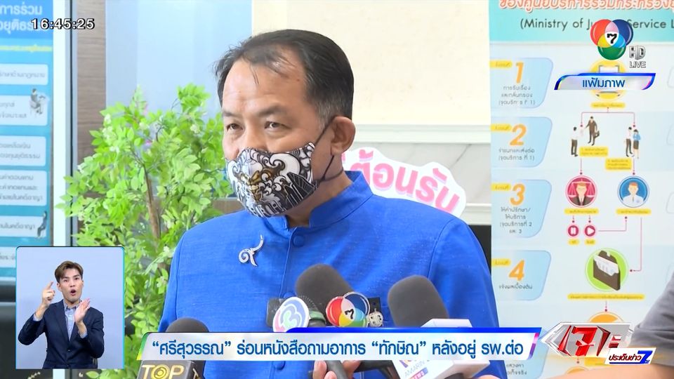 เจาะประเด็นข่าว 7HD - นักร้องคนดัง คุณศรีสุวรรณ จรรยา ส่งหนังสือถึง กรมราชทัณฑ์ ขอเอกสารบันทึกของเจ้าหน้าที่ และความเห็นแพทย์ หลังลงความเห็นว่าให้ นายทักษิณ ยังต้องพักรักษาตัวอยู่ที่โรงพยาบาล