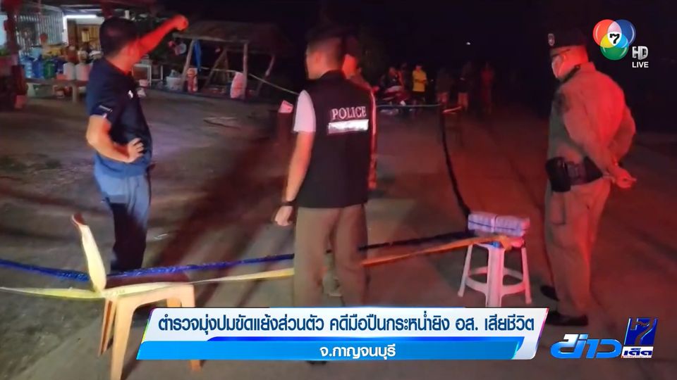 ข่าวเด็ด 7 สี - ส่วนคดี นายนพเดช อายุ 34 ปี อาสาสมัครรักษาดินแดน หรือ อส.จังหวัดกาญจนบุรี ถูกกระหน่ำยิง 9 นัด เสียชีวิตต่อหน้าภรรยาและลูกชายอายุ 6 ขวบ ระหว่างซื้อของที่ร้านชำ ช่วงกลางดึกวานนี้ (24 ก.ย.)