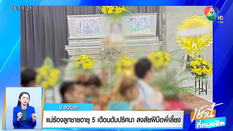 จากกรณีที่หญิงสาวรายหนึ่ง แจ้งว่า ลูกชายวัย 5 เดือน เสียชีวิตอย่างเป็นปริศนา หลังจากนำไปฝากเลี้ยงกับเพื่อนบ้าน ช่วงที่ตนเองต้องเดินทางไปต่างจังหวัด โดยเพื่อนบ้านอ้างว่า เด็กสำลักนมเสียชีวิตแต่ผลชันสูตรจากแพทย์สรุปว่า เด็กเสียชีวิตจากอาการบาดเจ็บปอดฉีก และมีเลือดคั่งที่ศีรษะ ก่อนที่แม่จะเข้าแจ้งความกับ ตำรวจ สภ.เมืองสงขลา ให้สืบสวนติดตามจับกุมคนที่ทำให้ลูกเสียชีวิต