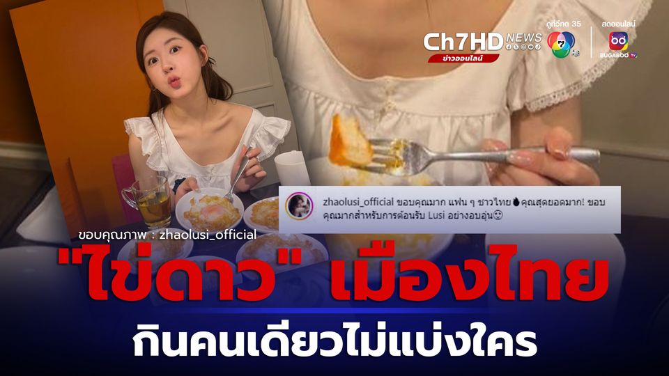 ซึ่งในภาพจ้าวลู่ซือ มีไข่ดาวบนโต๊ะอาหารถึง 5 ฟอง พร้อมโชว์ท่ากินสุดอร่อยถูกใจแฟน ๆ ชาวไทย แห่คอมเมนต์ชมสนั่น อาทิ น้องไข่ดาว, น่ารักจนใจเจ็บบบบ, ไข่ดาว, ประเทศไทยมีจ้าวลู่ซือแล้ว