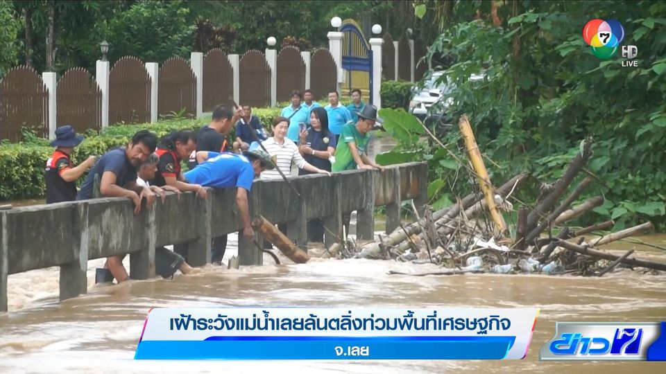 ข่าวภาคค่ำ - พื้นที่เทศบาลเมืองเลย ต้องเฝ้าระวังระดับน้ำในแม่น้ำเลย เอ่อล้นตลิ่ง เนื่องจากยังมีปริมาณน้ำจากพื้นที่ตอนบนและลำน้ำสาขา ไหลลงมาสมทบ จากฝนตกต่อเนื่อง